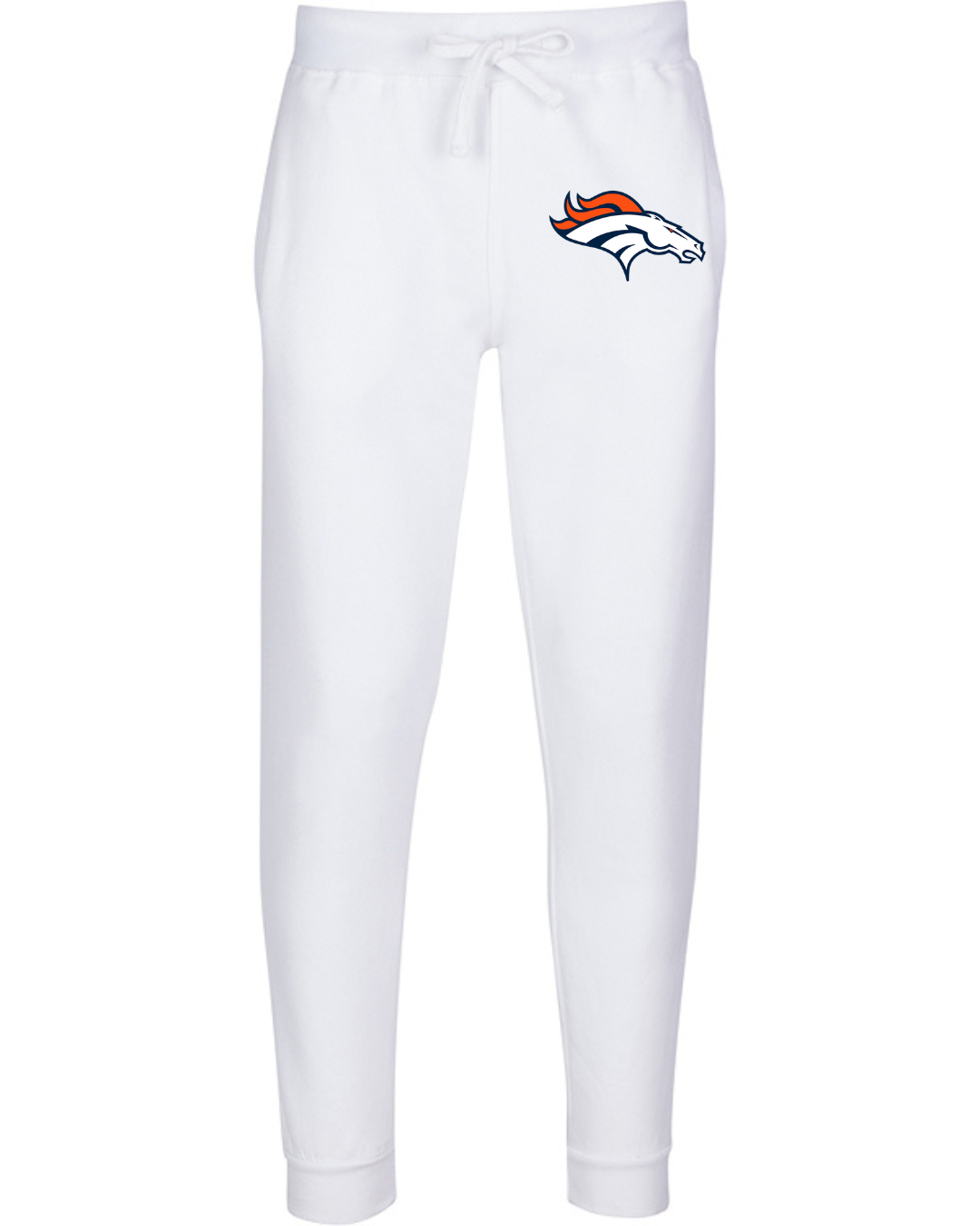 Show your team spirit with these Denver Broncos Logo Joggers Sweatpants. Featuring the iconic Broncos horse logo on the hip, these sweatpants are perfect for dedicated football fans. Designed with a comfortable unisex fit for both men and women, they include an adjustable drawstring waistband and ribbed ankle cuffs for a clean athletic look. Ideal for game days, tailgating, workouts, lounging, or everyday casual streetwear. Made from soft premium cotton fabric with durable, high-quality print that lasts.