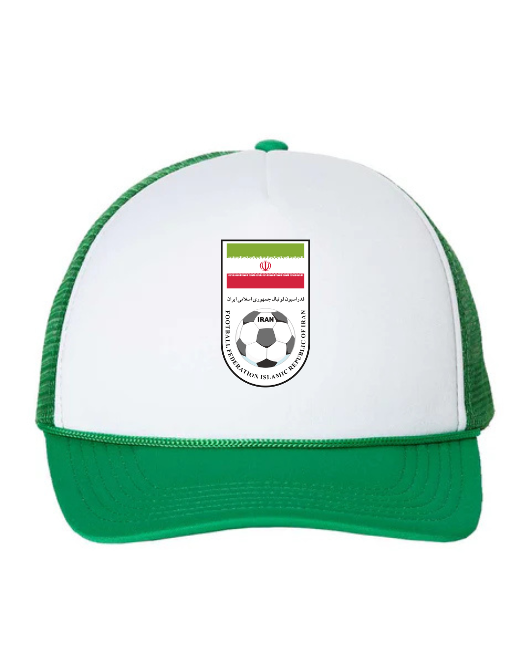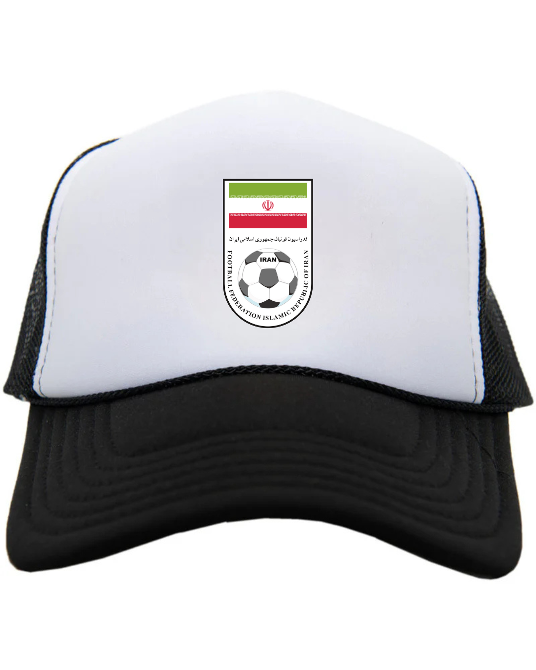Show your national pride with our Iran Football Logo Trucker Cap. Featuring the official-style Iran football emblem with national colors and football detailing on the structured front panel, this cap delivers a bold and meaningful look. Designed with a breathable mesh back and adjustable snap closure, it offers all-day comfort — perfect for match days, casual wear, football fans, or representing Iran with pride wherever you go.