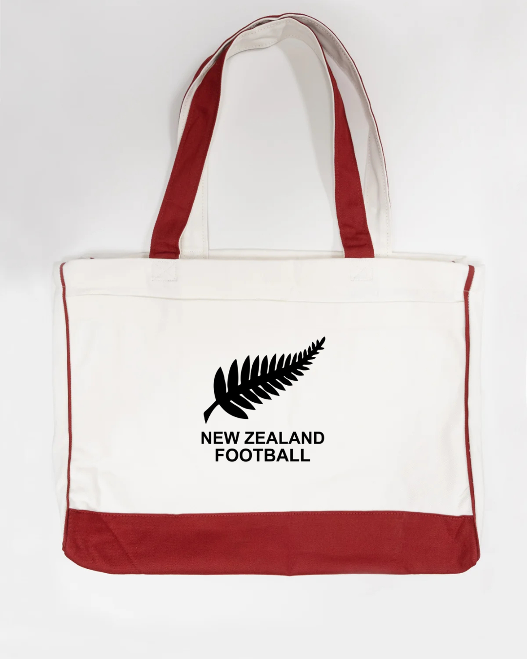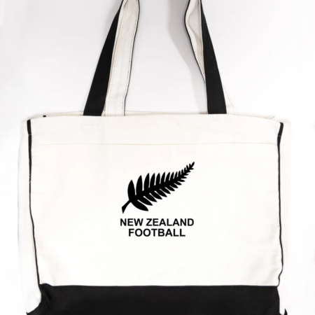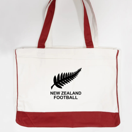 Show your national pride with our New Zealand Football Logo Trimmed Tote Bag, designed for passionate football fans and supporters of New Zealand soccer. Featuring the iconic New Zealand Football silver fern logo, this sports fan tote bag is perfect for match day, shopping, travel, work, school, or everyday use. Crafted from durable canvas fabric with bold red trimming, this reusable tote offers a spacious interior for carrying groceries, books, gym gear, or match-day essentials. Lightweight yet sturdy, this New Zealand football tote bag is suitable for men, women, and unisex use, making it a great football fan accessory, national team gift, or everyday carry bag.