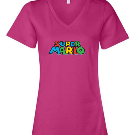 Level up your style with this Super Mario women’s v-neck t-shirt, featuring the iconic multicolor logo inspired by the beloved Nintendo video game. Perfect for gamers, retro game fans, and lovers of geek fashion, this tee delivers both nostalgia and comfort. Made from a soft cotton-blend fabric, the modern v-neck cut offers a flattering fit ideal for casual wear, gaming events, or comic cons. A fun gift for Super Mario fans and classic video game collectors alike, this shirt adds a playful pop culture touch to your everyday look.