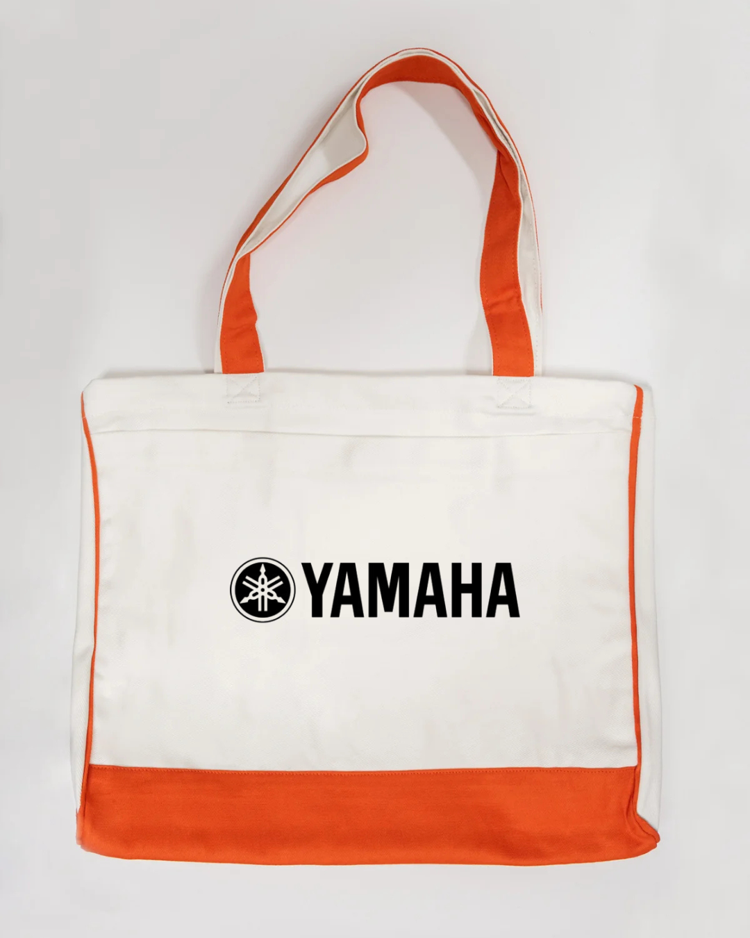 Carry bold motorsport and music-inspired style with our Yamaha Logo Trimmed Tote Bag, designed for true Yamaha fans. Featuring the iconic Yamaha tuning fork logo, this everyday tote bag is perfect for motorcycle enthusiasts, music lovers, racing fans, and brand supporters. Made from durable canvas fabric with vibrant orange trimming, this reusable tote offers a spacious interior for shopping, travel, work, school, gym, or daily use. Lightweight yet sturdy, this Yamaha tote bag is ideal for men, women, and unisex use, making it a great motorcycle accessory, music brand tote, or gift for Yamaha fans.